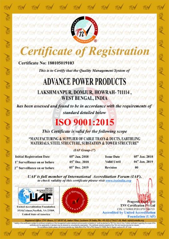 Equipped with top-notch infrastructure, Advance Power Product's innovative technological set up, manufactures products of high international standards. Thanks to our optimum quality and accurate products, we meet our customer's demands, which is our primary objective. Our product line includes: GI Structures, Electro Forged Gratings, Cable Tray and Support/Accessories, All kind of Earthing Materials, Tower Structures etc.
